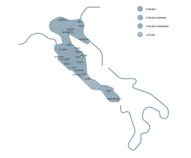 The Etruscan civilization has its roots in the Villanovan culture (9th–8th century BC), which developed in Tuscany, northern Lazio, Emilia, and Campania.