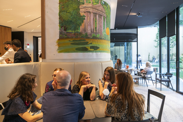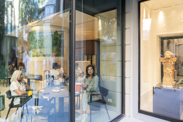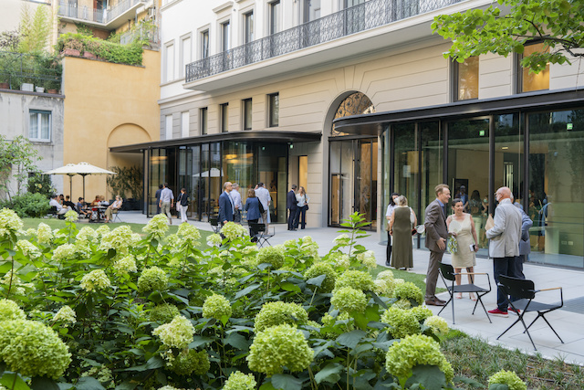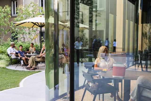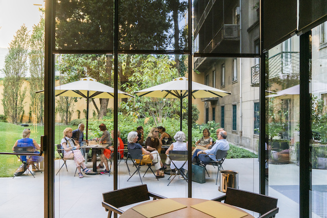 Affacciato sul giardino interno del palazzo della Fondazione Luigi Rovati, con questa nuova iniziativa Caffè Bistrot Andrea Aprea arricchisce lâesperienza di visita delle collezioni museali e delle mostre temporanee, proponendo un momento di pausa in perfetta armonia con lâambiente circostante.
