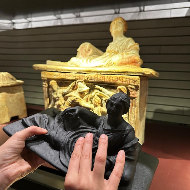 Utilizzando la tecnologia delle stampe 3D, sono stati riprodotti i reperti del banchetto etrusco e altre opere significative della collezione, offrendo cosĂŹ una coinvolgente esperienza conoscitiva e didattica.