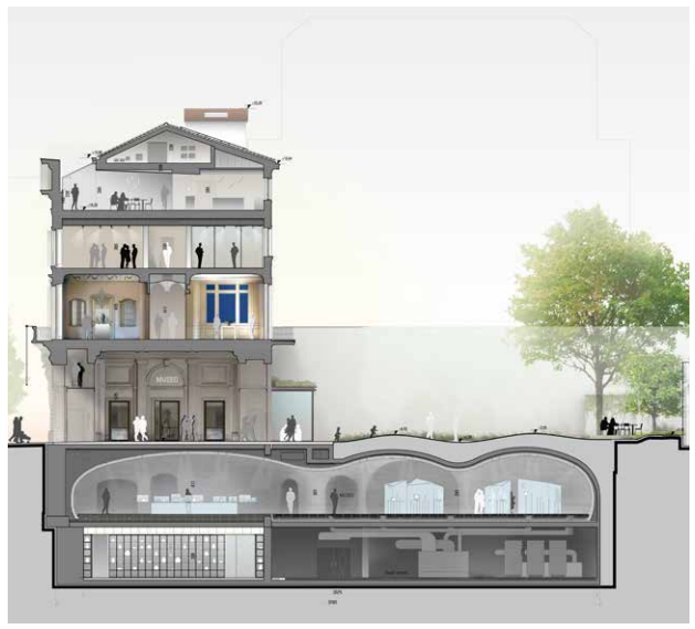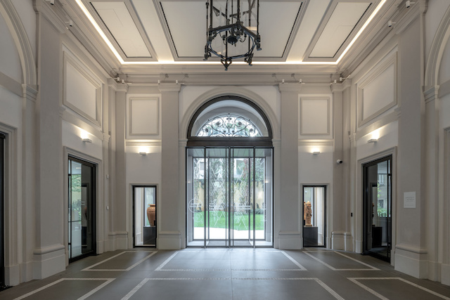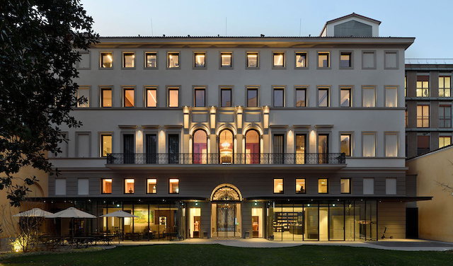 ll progetto ha previsto che la facciata storica vincolata fosse conservata; il corpo del palazzo è stato oggetto di una profonda trasformazione in risposta alle esigenze della Fondazione. In particolare, l’ampliamento dei piani interrati ha permesso la realizzazione del piano espositivo ipogeo e del piano destinato ai depositi della collezione e agli impianti tecnologici. Il primo piano, che prosegue il percorso espositivo, mantiene lo spirito e lo stile del palazzo: i pavimenti, i soffitti e gli arredi originali sono stati oggetto di un importante restauro conservativo. Gli altri piani dell’edificio ospitano funzioni connesse all’attività museale: uffici, sala studio, sale conferenze, spazi per le esposizioni temporanee, lo shop museale, il caffè bistrot e il ristorante. Al piano terra, la grande hall d’ingresso ha la funzione di spazio di distribuzione: una piazza sempre accessibile su cui si affacciano la biglietteria, lo shop museale, il caffè-bistrot, l’ingresso al ristorante gastronomico situato all’ultimo piano e il giardino con il padiglione espositivo.