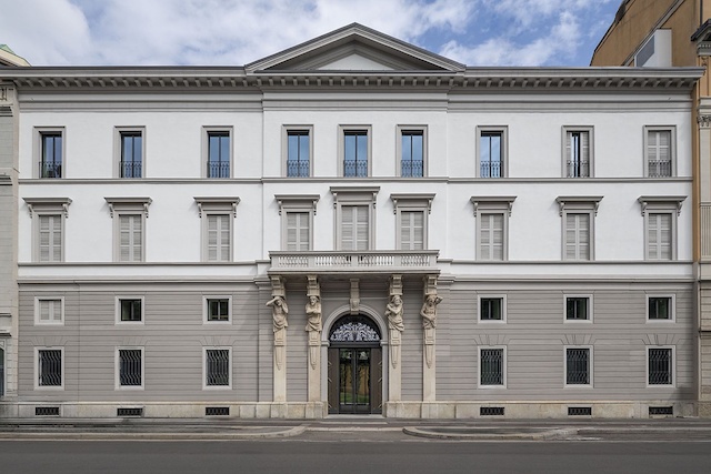 Gli interni riprendono in chiave contemporanea i materiali della tradizione milanese e dialogano con le opere dâarte tra cui spicca lâopera site specific Il vestito di un riflesso, realizzata da Andrea Sala per il timpano del Palazzo.