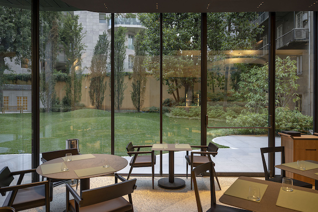 Il caffè-bistrot e il ristorante a due stelle Michelin della Fondazione Luigi Rovati sono gestiti dal rinomato chef napoletano Andrea Aprea.