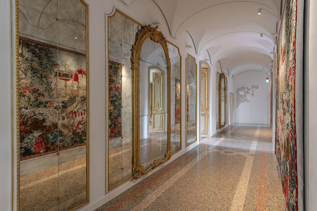 Dal Piano Ipogeo la visita prosegue al primo piano, il Piano Nobile. Dai rivestimenti in legno alle porte dorate, dai pavimenti ai camini in marmo, fino agli alti specchi settecenteschi del corridoio, tutti gli ambienti progettati da Filippo Perego sono stati recuperati, restaurati e ridisegnati per creare uno spazio espositivo all'avanguardia. Lo studio approfondito degli impatti cromatici e dei dettagli favorisce il dialogo tra archeologia e arte contemporanea e offre al visitatore ispirazioni ed emozioni visive e concettuali.