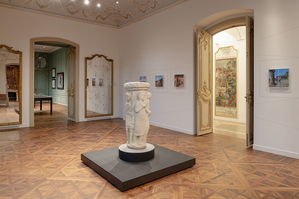 Le diverse aree dell'allestimento mirano a creare un continuum narrativo nel dialogo per opposizioni o contiguità tra antico e contemporaneo, dal piano sotterraneo al Piano Nobile, e quindi a dare suggestioni specifiche al visitatore che, come esperienza emotiva, oltre ai manufatti e alle opere, visita anche gli spazi architettonici.